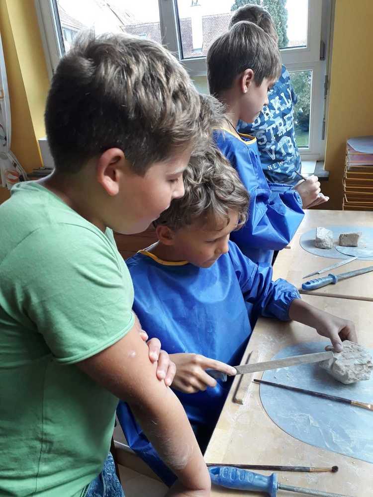 Kinder lieben zu gestalten und mit unterschiedlichen Materialien ihre Kreativität auszuleben. Sie stellen ihre Sicht der Wirklichkeit zur Welt, Gefühle und Erlebnisse dar. Jeder künstlerische Ausdruck ist ein Stück Selbsterfahrung und Persönlichkeitsentwicklung.¹ Eine Vielzahl an Bastelmaterialien, Farben, Werkstoffe wie Holz,Darstellungsmöglichkeiten und Bücher stehen ihnen zur Verfügung. Kinder können Geräte zerlegen und wieder zusammenbauen, außerdem „verschönern“ wir unseren Hort gemeinsam. Immer wieder gibt es kleine Projekte, in denen interessierte Kinder mit Schleifmaschine, Pinsel und Lack arbeiten. Die Kinder entscheiden, ob sie eigene Ideen umsetzen oder sich lieber an unseren Angeboten orientieren. Wichtig ist uns dabei nicht bewertend vorzugehen.