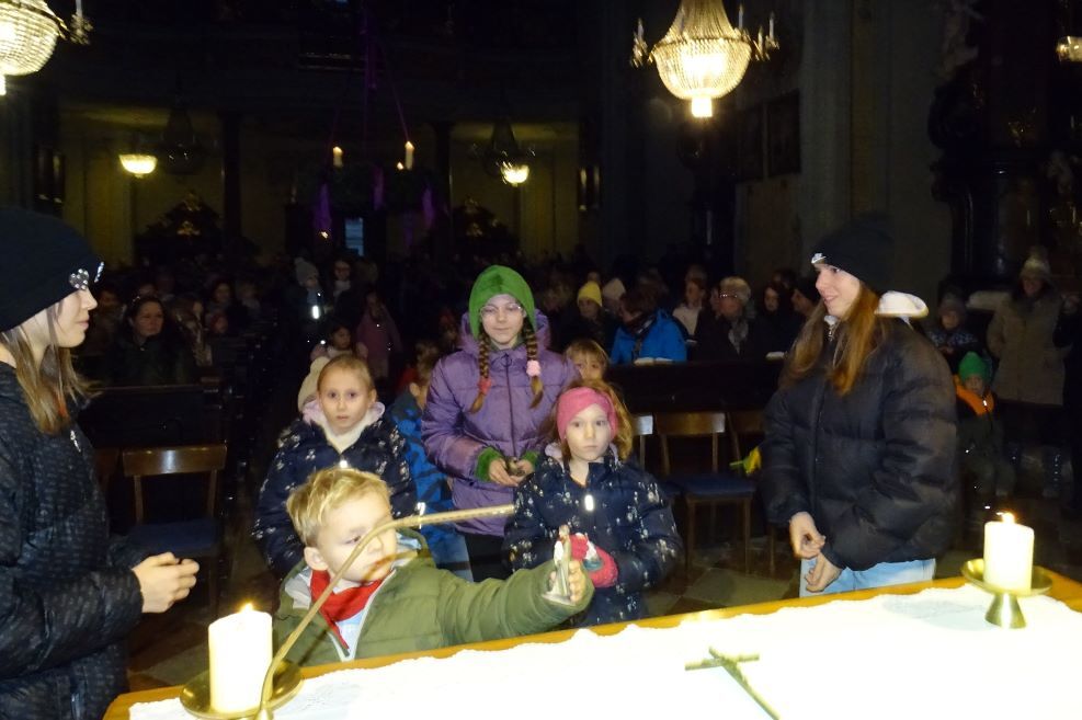 Viele Kinder und (wie ich heute erfuhr) auch Großmütter 80 plus waren in die Kirche gekommen. Wir haben von ganzem Herzen gesungen, von „Wer klopfet an?“ bis zur „Stillen Nacht“. Mein Gott, was ist dieser Brauch der Herbergsuche so schrecklich aktuell…