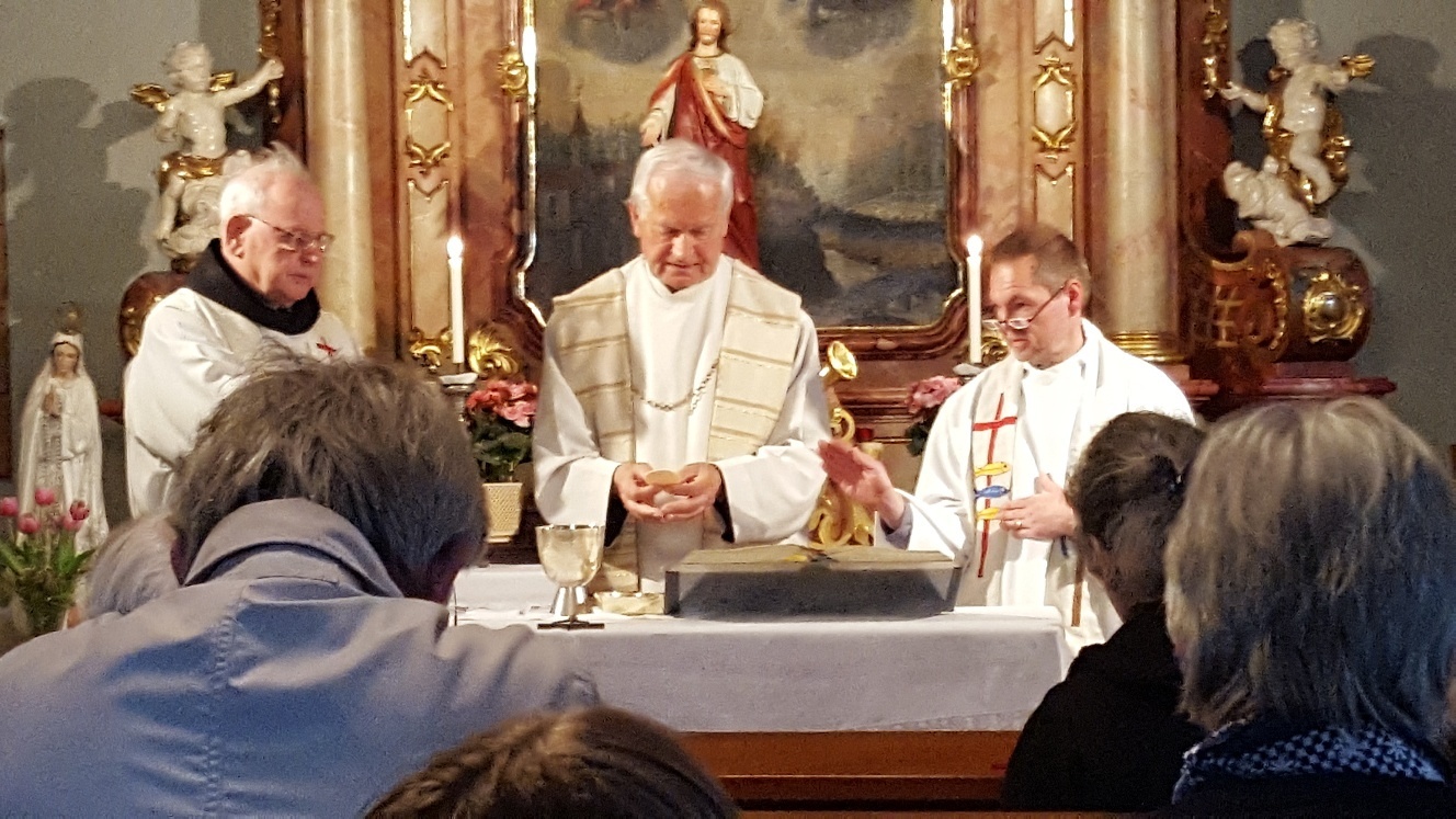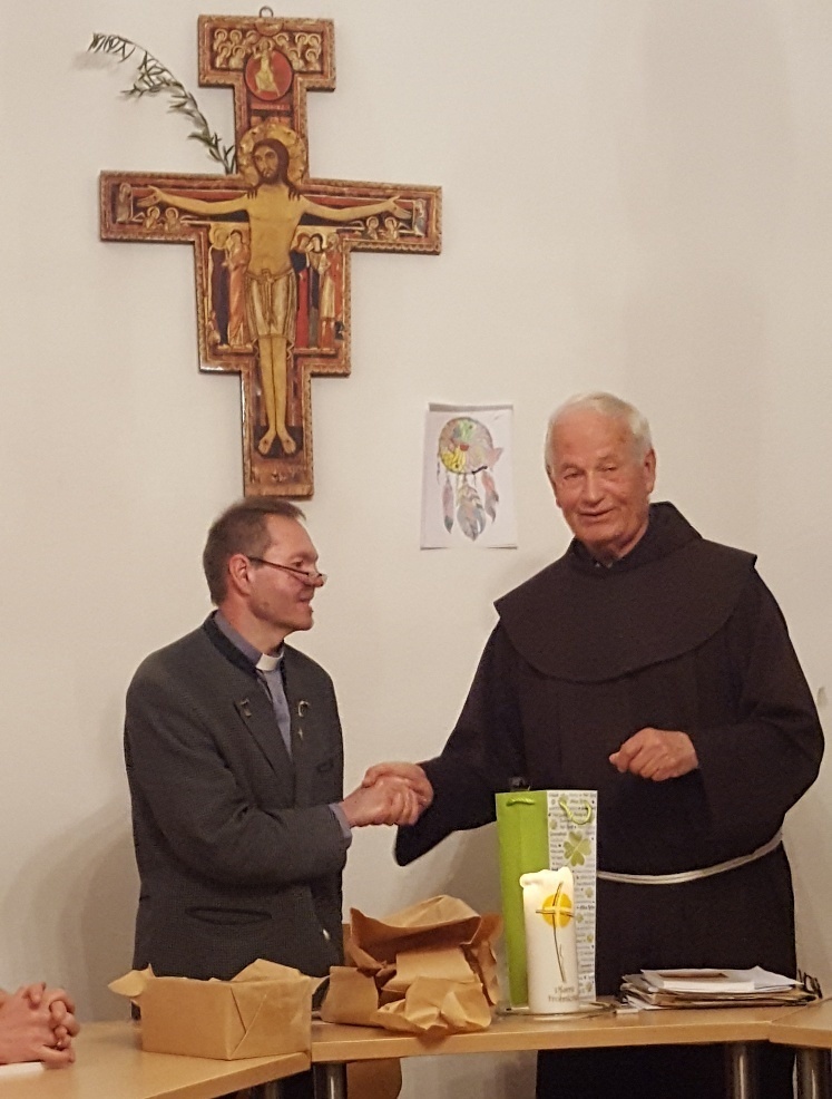Da der neue Pfarrer am 27.März seinen 50sten Geburtstag gefeiert hatte, gratulierte man ihm und hieß ihn mit einem Glas guten Weins willkommen.