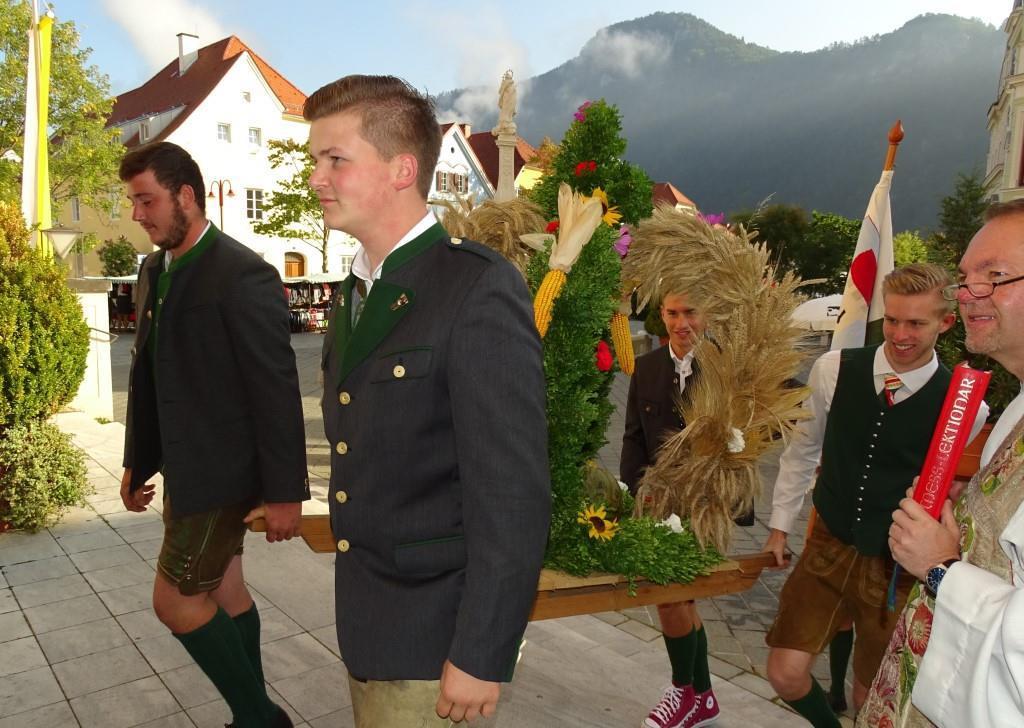 Wir bedanken uns bei allen Mitwirkenden in der Vorbereitung und Durchführung dieses Festes: z.B. bei den Bäuerinnen für die große Erntekrone in der Kirche, beim Musikverein, bei allen Fahnen- und Leuchter-Trägern...