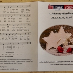 Die musikalische Gestaltung lag wieder in den Händen der Musikerinnen und Musiker der Musikschule Premstätten. Orgelmusik und Holzbläserensembles erfüllten die Kirche mit adventlichen Klängen und erfreuten alle Mitfeiernden.