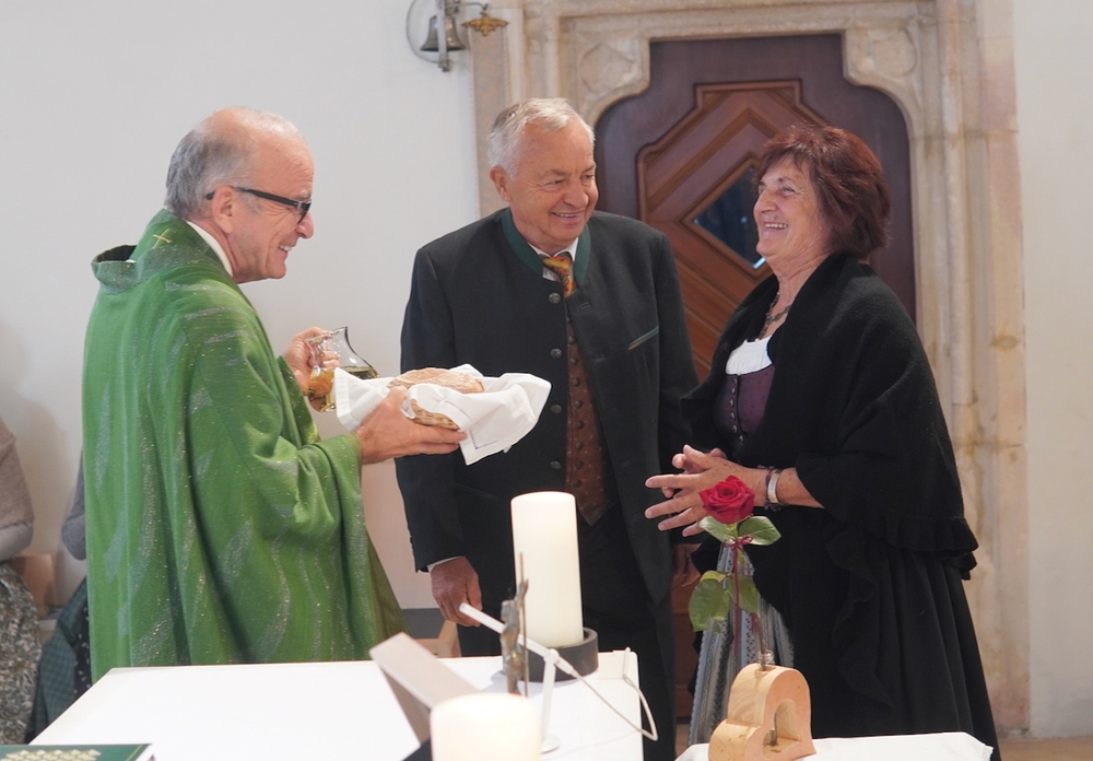 Viele Jahre oder Jahrzehnte als Ehepaar Hand in Hand zu gehen, ist ein Geschenk, wofür wir Gott danken dürfen. Seine Liebe, so Vikar Norbert Glaser in seiner Predigt, „wartet nicht in einem Präsidentenpalast, bis man zu ihr vordringt, sie macht sich von sich aus auf den Weg zu uns und bleibt“. Sie ist ein Universum, in dem wir uns in Gottes Hand geborgen wissen dürfen.