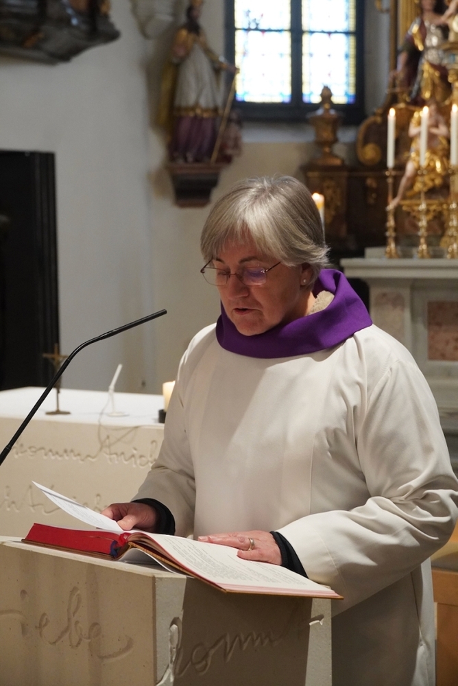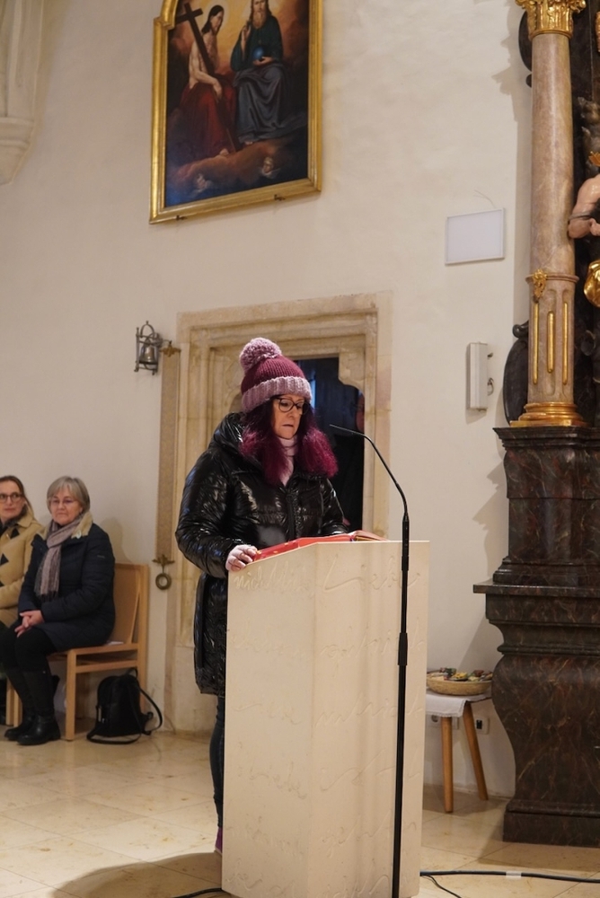 Bei der Wort-Gottes-Feier am Sonntag sprach WGF-Leiterin Christa Habith in Bezug auf Jesaja von der uralten Sehnsucht der Menschen nach Frieden und Gerechtigkeit. Nur durch Umkehr, siehe Johannes der Täufer (Mt 3, 1-12), kann Veränderung geschehen und Gott in uns ankommen. Umkehren heißt Haltungen überdenken, Altes verlassen und die Herzen öffnen.
