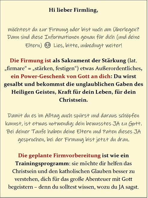 bitte, zum jeweiligen Elternabend gemeinsam mit der Geburtsurkunde des Firmlings mitbringen